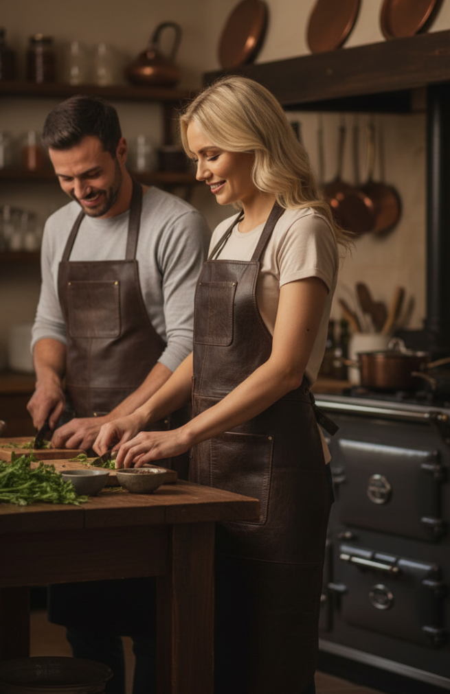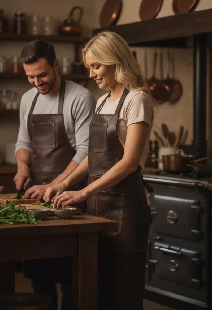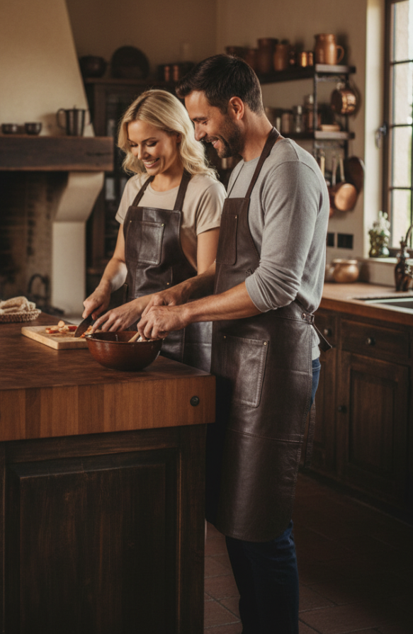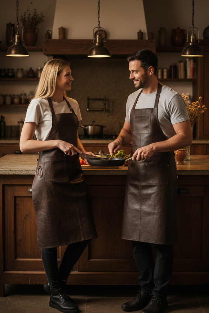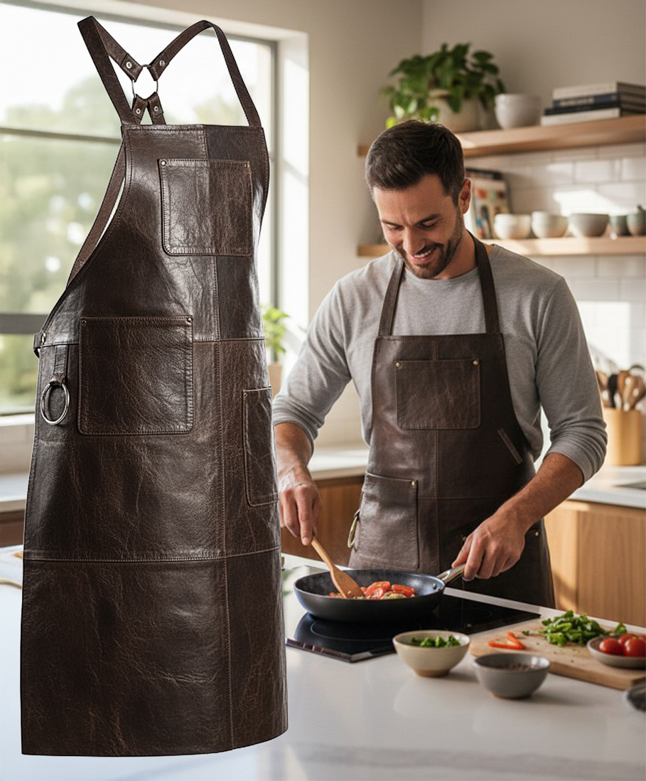 Den ekstra bløde voksbehandlede læderkvalitet gør det muligt for forklædet at følge alle dine bevægelser og give en behagelig pasform til at lette dine opgaver i køkkenet eller på grillen.