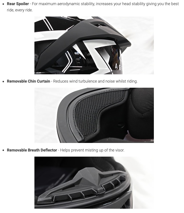 Agrius Wrath Polaris motorcykelhjelm skiller sig ud med sit farverige og stilfulde design. Med sin GLOW IN DARK-grafik lader Wrath Polaris dig blive set. Grafikken uploades i løbet af dagen og udsender et stærkt skær under svagt lys. Den integrerede hjelms mest unikke egenskaber er dens 2-delte nakkespænde - en nakkebeskyttelse på undersiden af hjelmen skaber en barriere, der stopper indkommende luft og reducerer vindturbulens og støj under kørsel - En robust aerodynamisk ABS-skal giver beskyttelse, mens dens multi -punkt ventilationssystem holder dig kølig selv på varme dage. Når solen er på sit stærkeste, skal du blot slippe den praktiske indvendige solskærm ned for at afværge blænding. Et mikrometrisk quick release spænde tillader små justeringer for en perfekt pasform. Du vil kæmpe for at finde sådan en velspecificeret hjelm til denne pris - Agrius Wrath har det hele!
