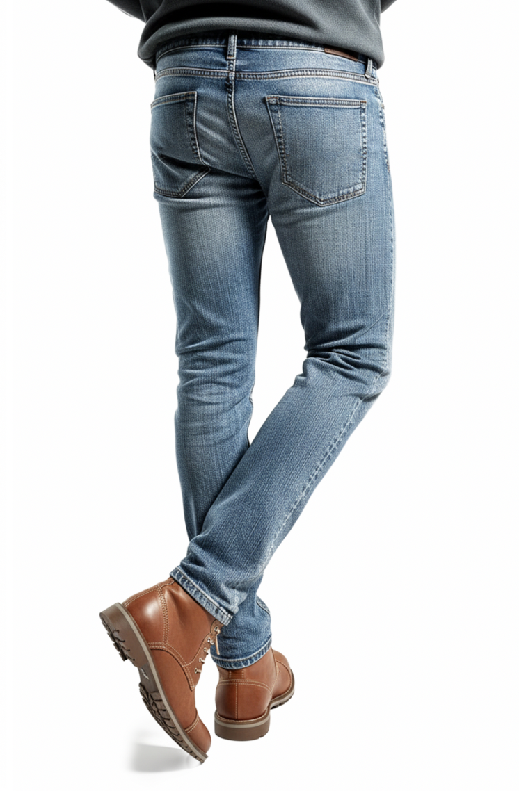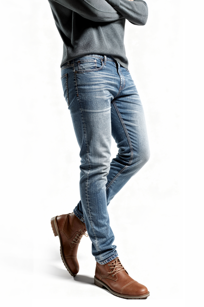- Materiale: 13 oz Jaguar heavy duty denim (98 % bomuld, 2 % elastan) med 2-vejs stretch.