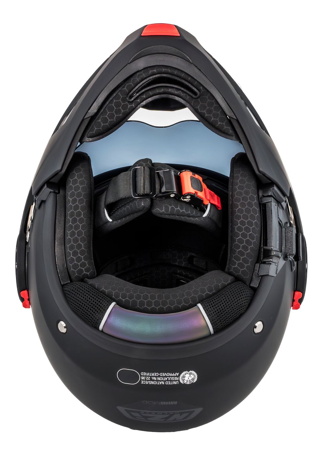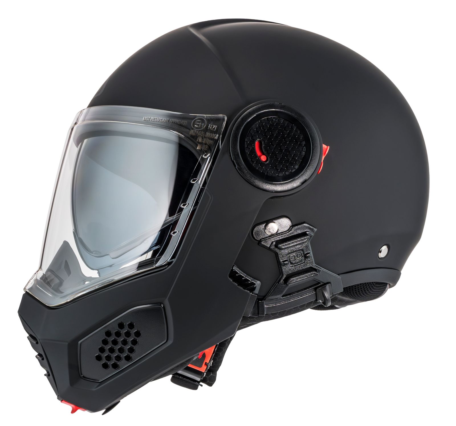 Takket være dobbelt P/J-certificering i henhold til ECE 22.06 kan du køre sikkert både med hagepartiet lukket på motorvejen eller opfældet i bytrafik.