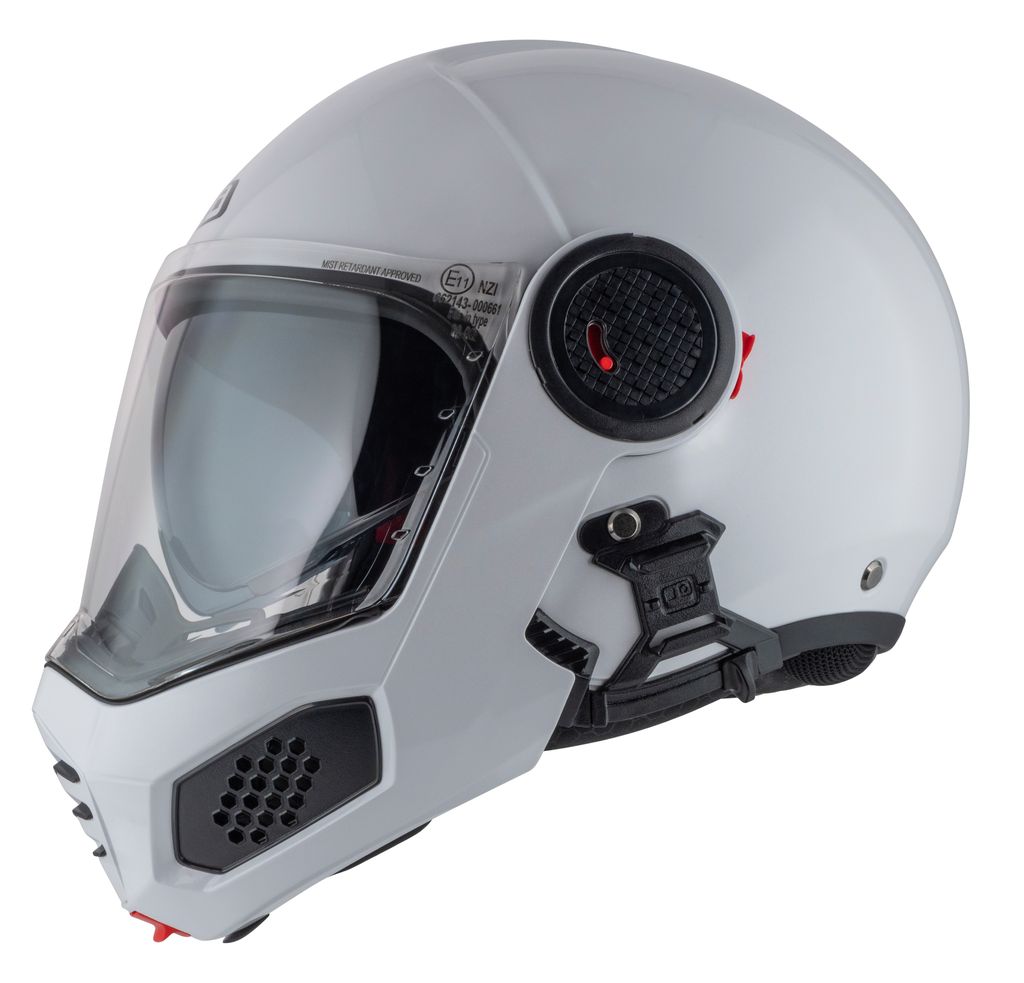 Takket være dobbelt P/J-certificering i henhold til ECE 22.06 kan du køre sikkert både med hagepartiet lukket på motorvejen eller opfældet i bytrafik.
