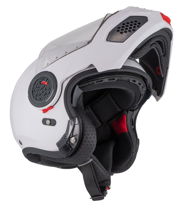 Den smarte opfældelige konstruktion gør, at du nemt kan skifte mellem integralhjelm og åben hjelm.