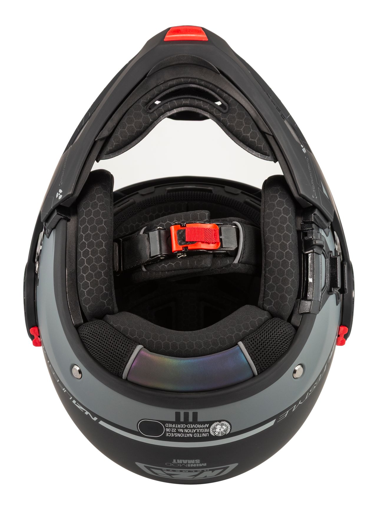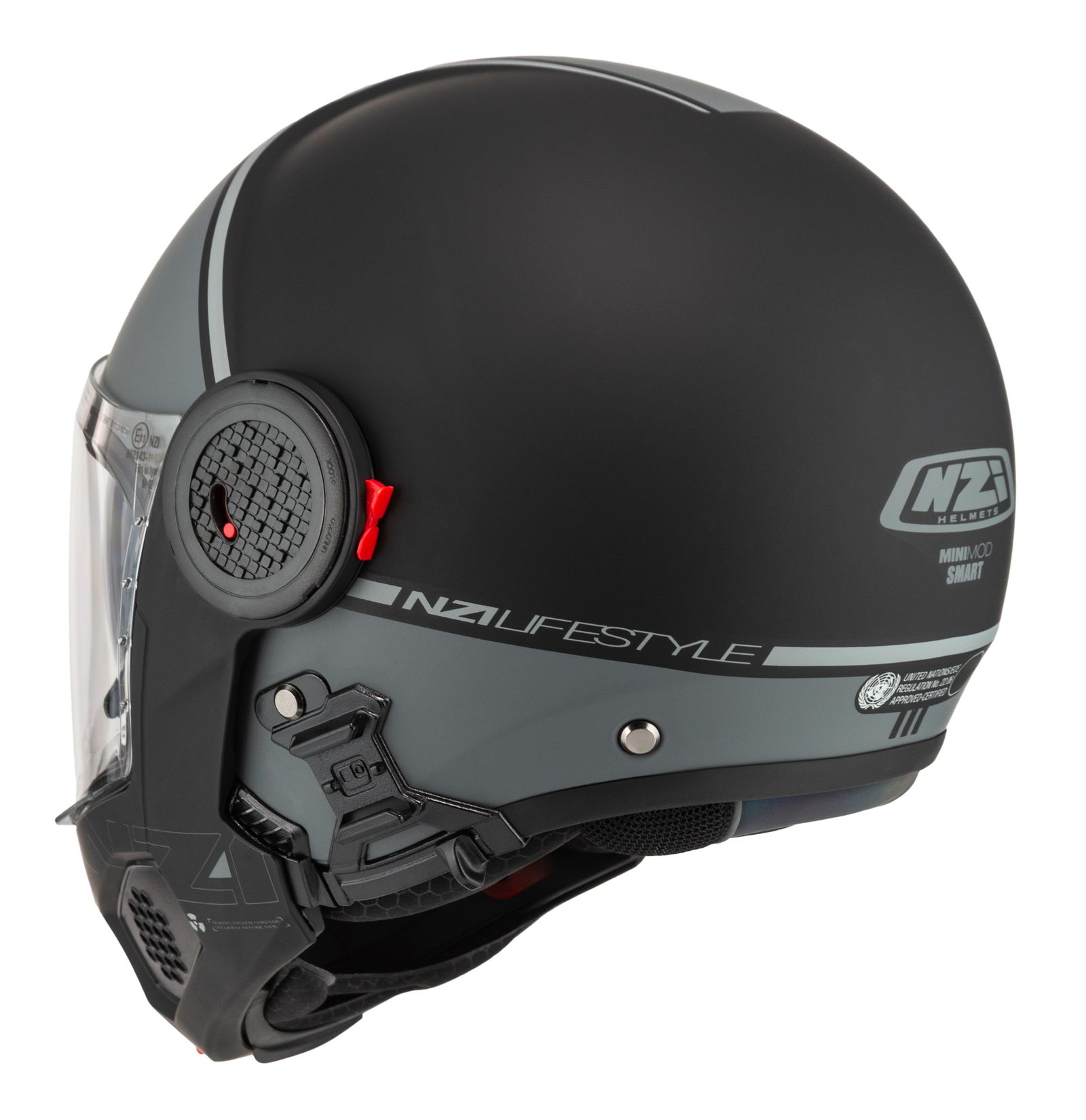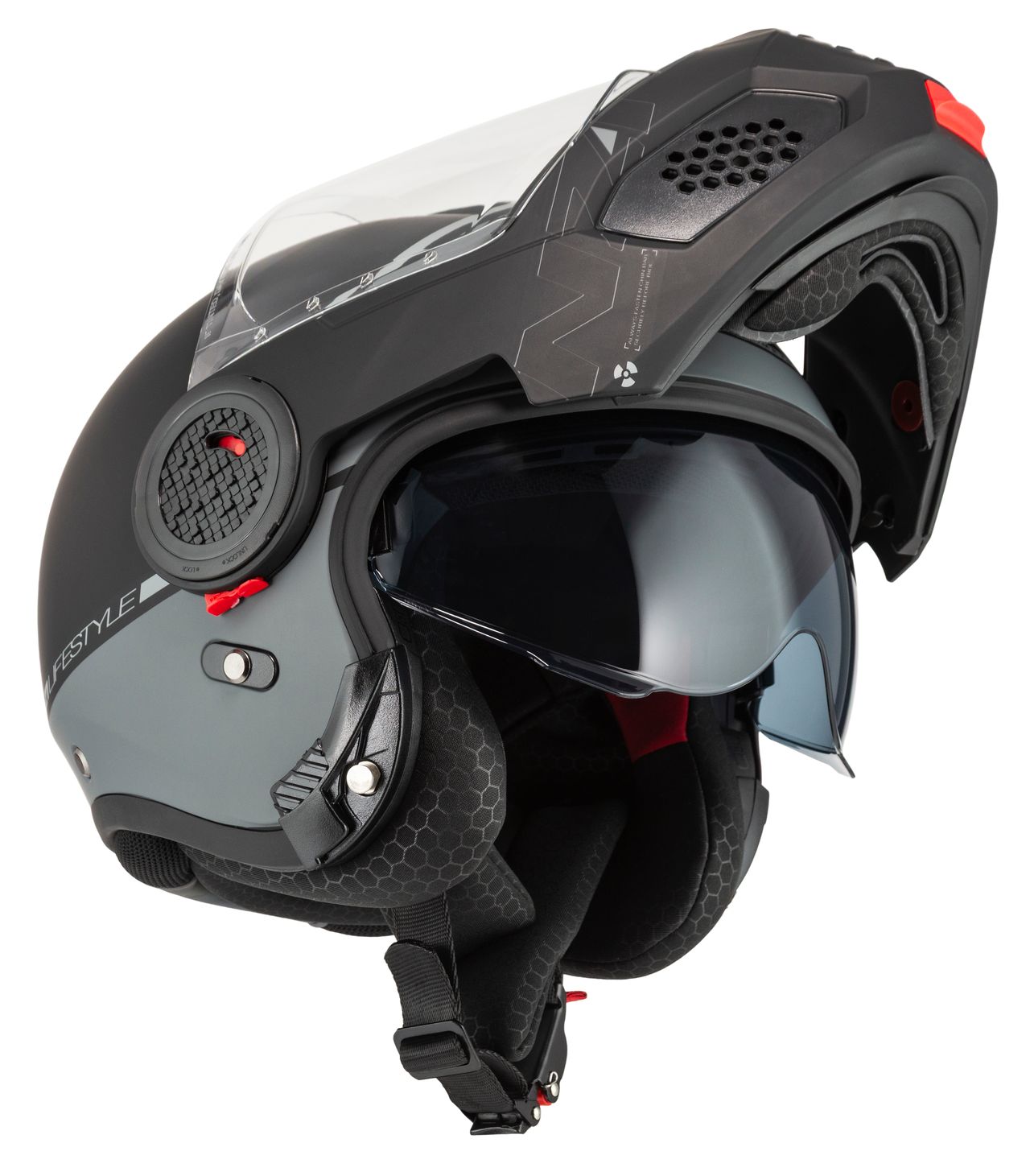 Takket være dobbelt P/J-certificering i henhold til ECE 22.06 kan du køre sikkert både med hagepartiet lukket på motorvejen eller opfældet i bytrafik.