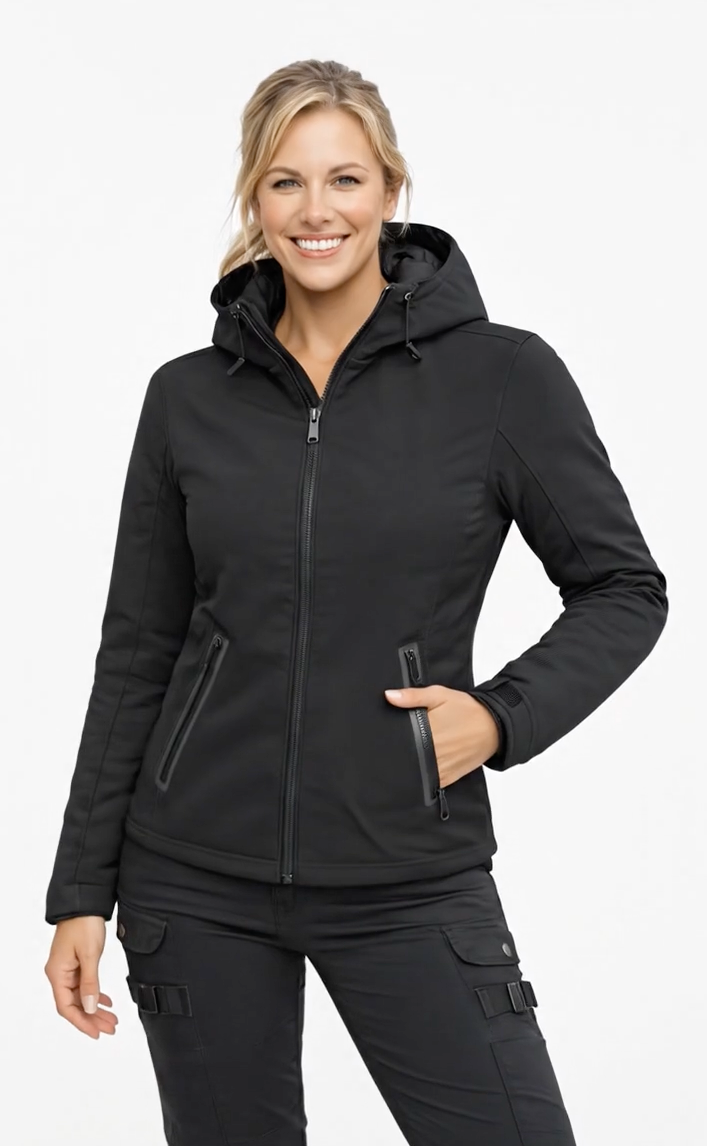 LADY BANDIT ARMOR FULL-BLACK SOFTSHELL CE-AA MOTORCYKELJAKKE TIL ALLT VEJR