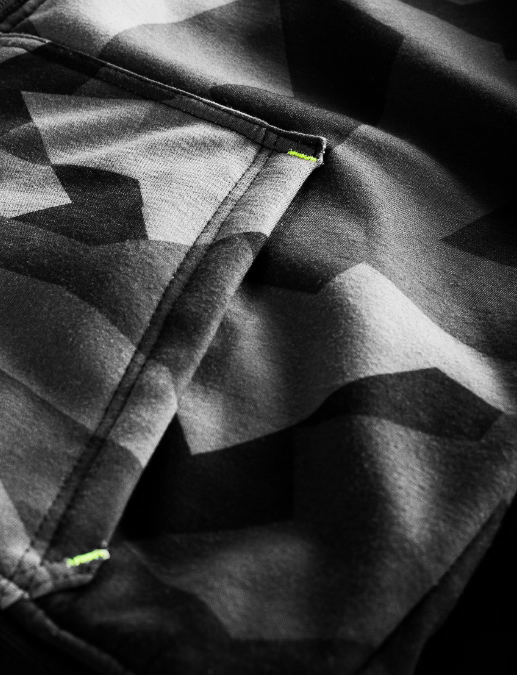 Mørk-tonet Camo skjorte med fuld dækning Dupont Kevlar. En længe ventet hættetrøje, der fungerer både som jakke og som almindelig sweater.