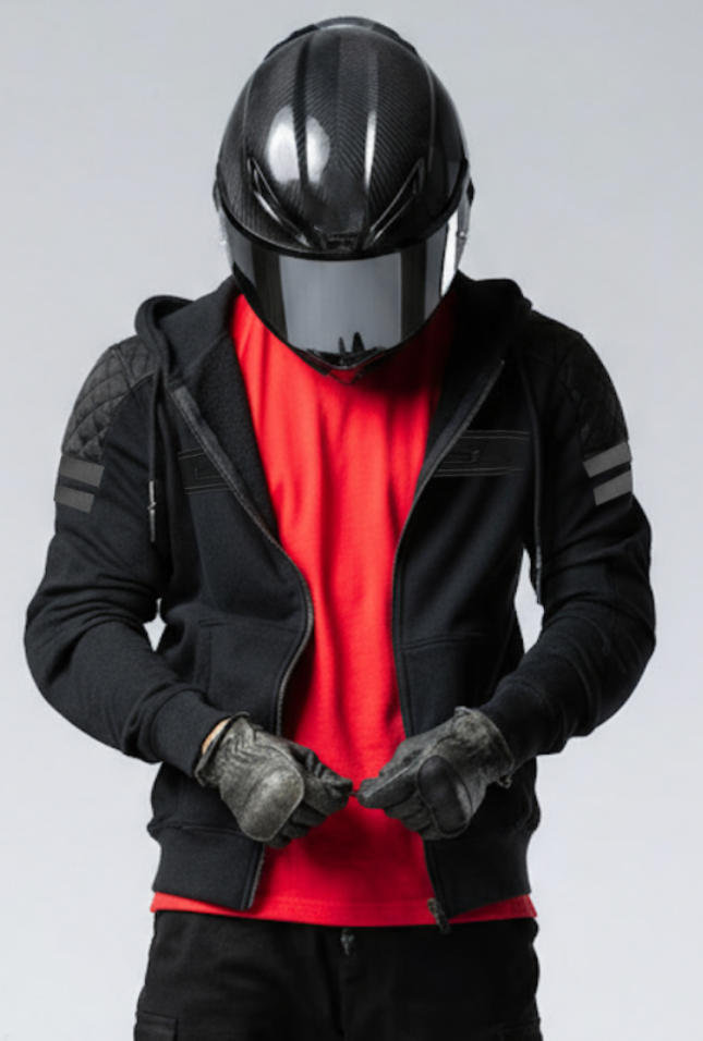 Dark Titan Kevlar Hoodie er udviklet til motorcyklister, der vil kombinere et stilrent hverdagslook med avanceret beskyttelse. Med slimfit-pasform, quiltede paneler og Kevlar®-forstærkninger på de mest udsatte områder får du både tryghed og komfort – lige velegnet på motorcyklen som i hverdagen.